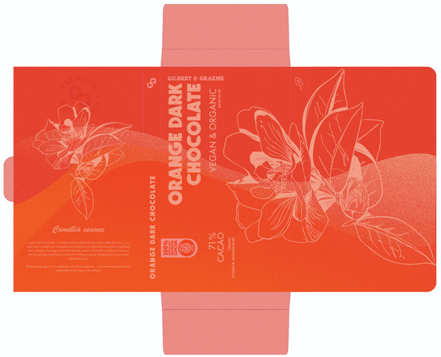 Inspired by the camellia — a symbol of love, refined beauty, and heartfelt devotion — our chocolate is crafted to stir the senses and soothe the soul. Bold dark chocolate is brightened with a whisper of orange zest and the delicate essence of camellia, unfolding in layers of warmth and light. Each bite is a moment of stillness, a gentle indulgence that honors both depth and grace.